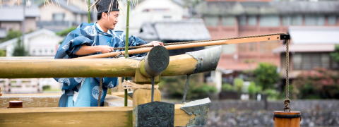 - Water is gathered by ladle from the river at Uji Bridge in the way of Hideyoshi Toyotomi, kanpaku (powerful ruler) in Japan, who supported Rikyu Sen to indurate Teaism. He always used the water from Uji Bridge every day in order to prepare his Matcha. The water gathering is called Kumiage no Gi drawing water ceremony.