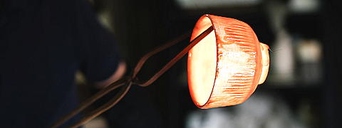 ![]() These three pictures are Raku-yaki firing process. It is just taken out from the kiln and red hot due to high temperature. |