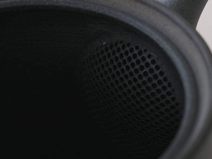 This Kyusu has a ceramic fine mesh filter, not removable mesh filter basket. Many porcelain Kyusu have a small mesh filter basket, so unfortunately the tea leaves can't fully open and therefore the flavor of the brewed tea will be weak. In many cases, ceramic mesh is not fine but rough like Dobin, which is not suitable for brewing Sencha Fukamushi and Konacha. However, ceramic mesh of this Kyusu is fine, so that you can brew all kinds of Japanese tea, including Sencha Fukamushi and Konacha. (In the unlikely event that you would like to filter out the small specks of Sencha Fukamushi or Konacha, we recommend you use a tea strainer.)