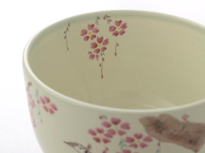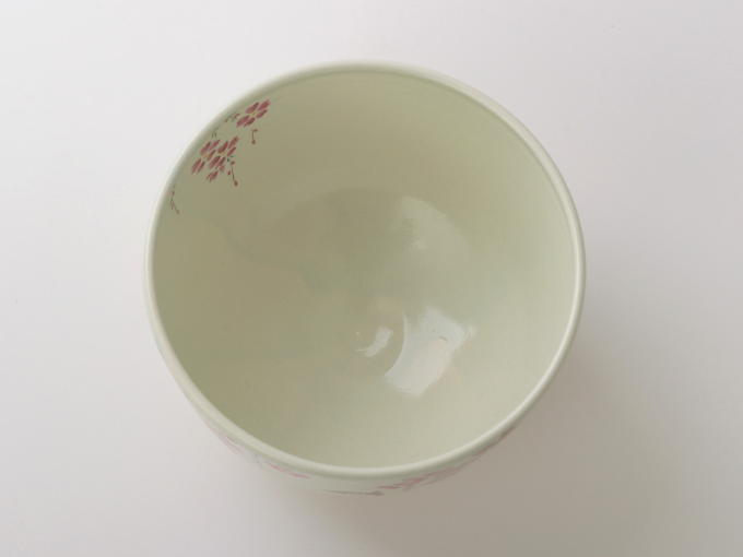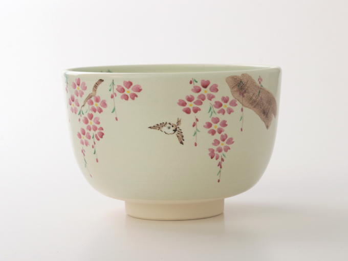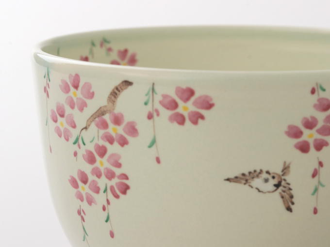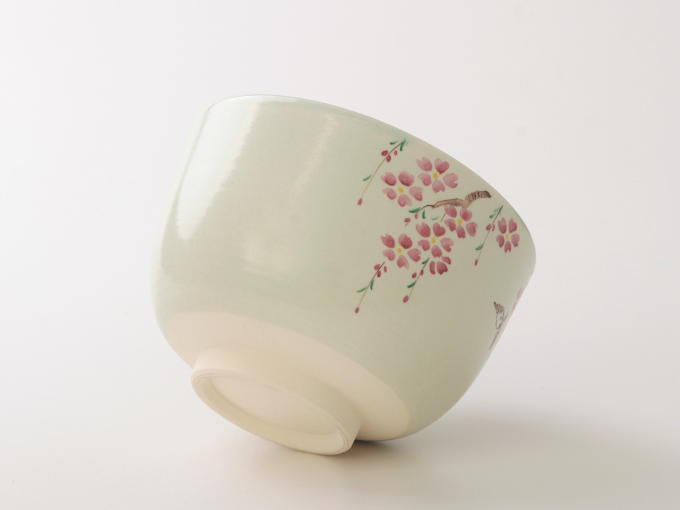 The softly nuanced background is achieved through Kaiho Kiln’s original ‘Turkish glaze,’ which subtly transforms into a delicate green hue through oxidation. This unique glaze gives each bowl its own one-of-a-kind expression while evoking the fresh clarity of spring. The gentle green harmonizes beautifully with the graceful weeping SAKURA of Kyoto, enhancing the poetic atmosphere of the piece.