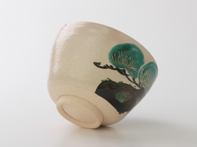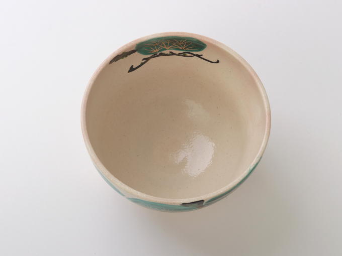 This Matcha bowl is a masterful creation by Traditional Craftsman Kaiho Yagi, a distinguished artisan of Kyoto Yaki.