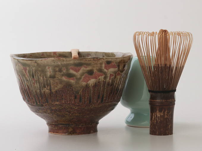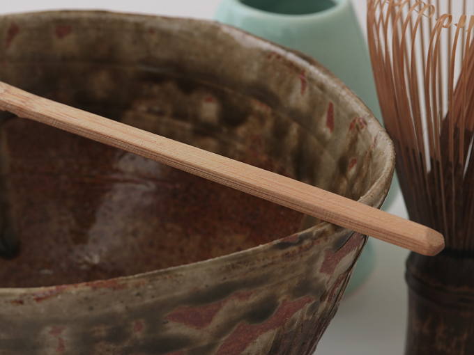 This Starter Set includes a Matcha Bowl (Matcha Chawan), Bamboo Whisk (Chasen) with 80 bristles, Whisk Keeper (Kusenaoshi), and Matcha Spoon (Chashaku). We chose KIIRABO - HARU no MOEGI handcrafted Matcha Bowl for this Starter Set. It is the most standard shape and size, so that it is also perfect for beginners. The Bamboo Whisk has 80 bristles, and therefore can make a very nice lather. Whisk Keeper helps Bamboo Whisk last longer.