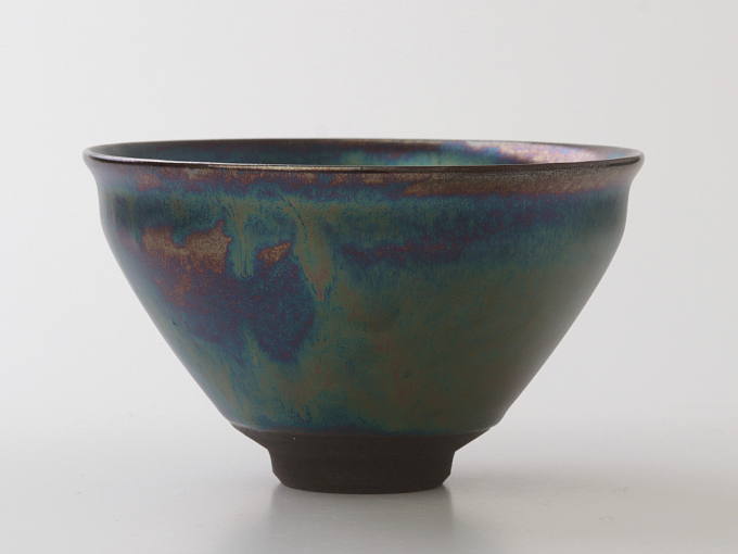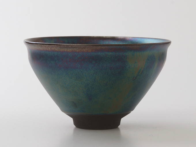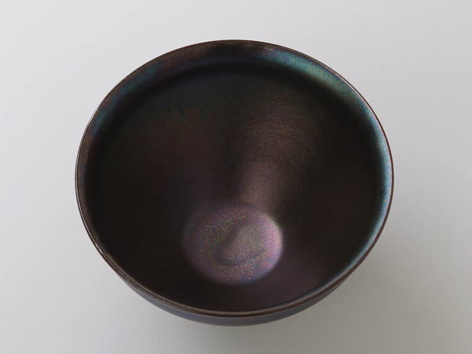 This pottery Matcha bowl creates an aura of elegance and nobility. This Matcha bowl is part of a new line of TENMOKU tea ware from Tohan Kiln. The shape is one of the traditional forms, which is used for TENMOKU Chawan. The shape matches the elegant glaze very well.