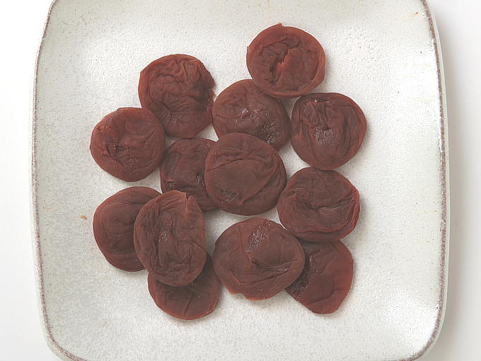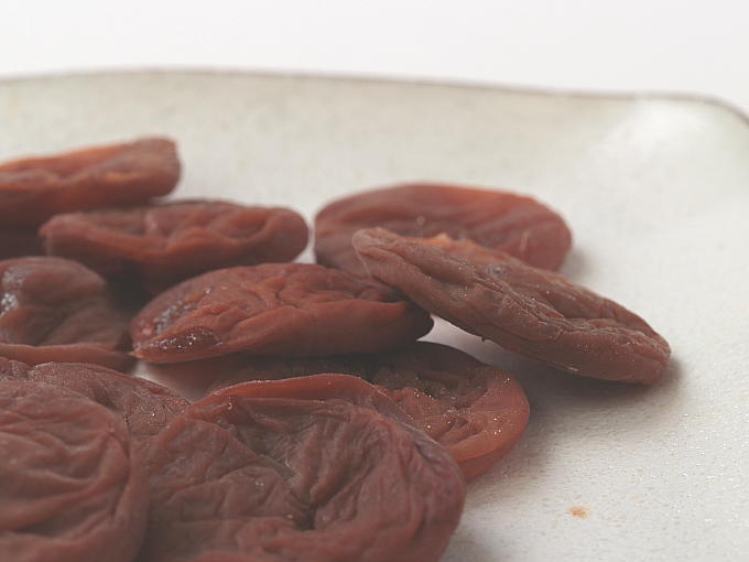 Fully ripened UME plums are soaked with salt and elaborately dried in the sun by skilled hands. This process not only makes the plums salty but also reduces the original sour taste of the plums. The plums are then soaked in syrup. These processes are the same as for UMEBOSHI however HOSHIUME has a few more steps. The plum pits are removed and the fruits are dried again. Some companies use a drying machine, but our HOSHIUME are dried carefully in the sun. This natural drying process, using only the heat and light from the sun, makes the HOSHIUME mild, soft and plump. The exquisite combination of natural sour, mild salty and sweet taste creates this noble and premium plum confection.
