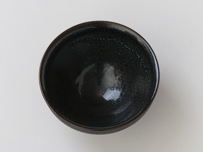 This pattern is known as YUTEKI which means oil droplet. TENMOKU YU glaze is an iron glaze traditionally known for its impenetrable and elusive nature. In ancient times, it was said that if an artisan tried to pursue TENMOKU glaze, they would become insolvent. It was developed more than 800 years ago, and many artisans pursed its technique, but few were successful. Because TENMOKU glaze was so difficult to create, it was a great honor for tea masters to acquire such precious earthenware at that time.